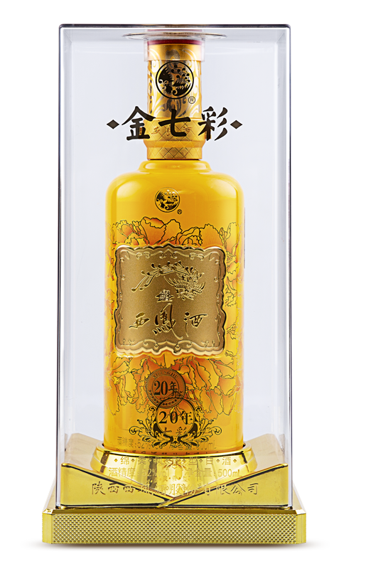 金七彩20年,高級質(zhì)感透明亞克力材質(zhì)外盒,其瓶身通體金黃,搭配燙金品牌標(biāo)志印花,有種近似黃金的閃耀、華貴。