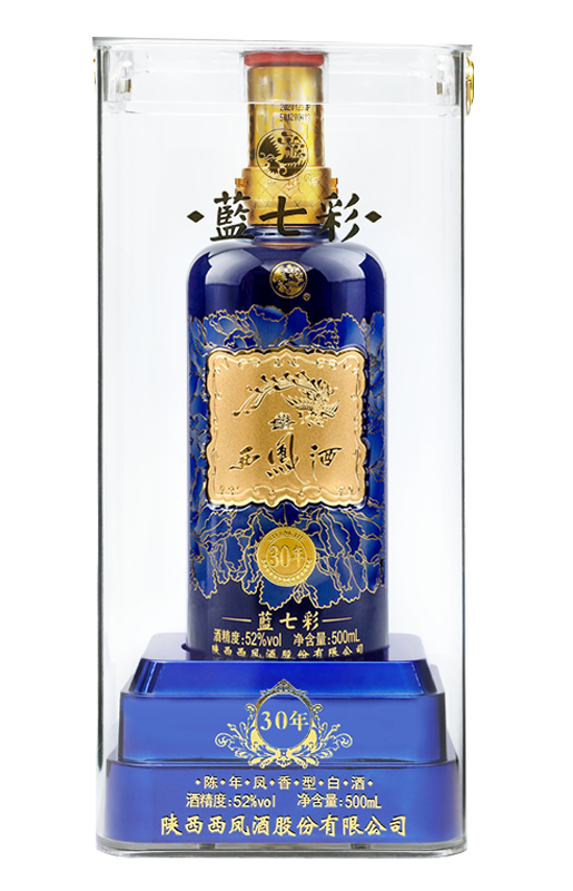 藍(lán)七彩30年,西鳳酒主導(dǎo)的重點大單品之一,是奠定次高端白酒市場的形象產(chǎn)品。